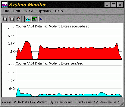 Figure 35. System Monitor of Bytes Received and Sent by a Modem