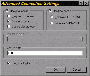 Note that the same dialog box can also be used to specify that a log file records all connection commands and connections.