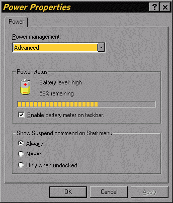 If APM is enabled, a Power applet will appear in the Control Panel. Many laptops have proprietary APM features and display a corresponding applet in the Control Panel.