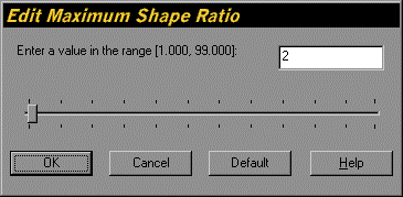 When maximum shape ratio is changed with the Max Shape Ratio command of the Edit menu, the maximum shape ratio of all current departments and the default maximum shape ratio for all future departments is also set to this value. Use the Department command to change the maximum shape ratio for individual departments.