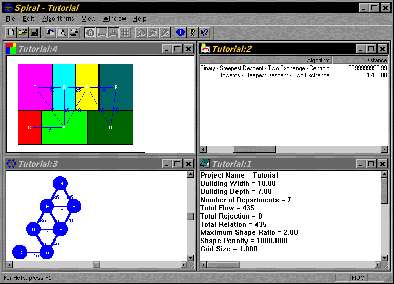 The Statistics View displays the history of algorithm statistics. This view can be printed to the default printer with the Print command of the File menu. Move and size this window to suit your taste. The result of the graph and layout algorithm that you have executed so far is illustrated in Figure 2.24. The corresponding Graph view and Layout view are shown in Figure 2.25.