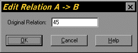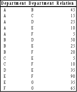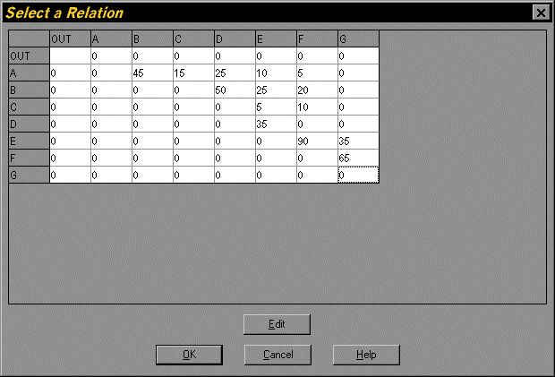 Edit the relation between departments A and B. The Edit Relation dialog will be shown. Set the relationship value to 45. The Edit Relation dialog is shown in Figure 2.12. Press the OK button to accept the new value for the relationship between departments A and B.