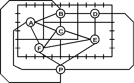 The block layout graph and the adjacency graph are related, in fact they are dual graphs. The relationship diagram can be constructed from the block layout by placing a node inside each department and by drawing the connecting relationship edge if and only if the two departments are adjacent, i.e. have a common wall. The resulting adjacency graph is planar. A graph is planar if it can be drawn in a two-dimensional plane without crossing edges.